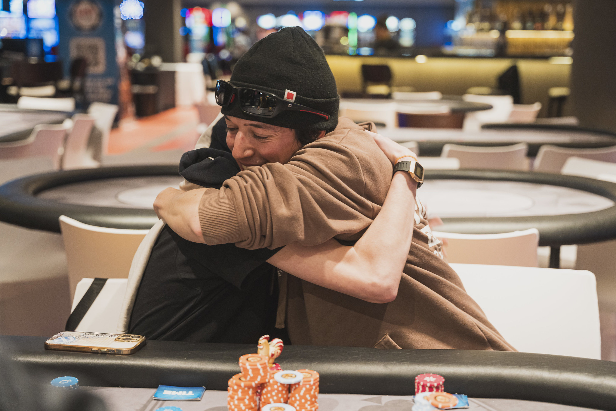 El poker tiene historias que merecen ser contadas. En la LPP de El Bolson, Lautaro Saracho, de Tierra del Fuego, ganó el Evento Progressive KO en lo que fue su primera gran experiencia en un evento de esta magnitud y justamente, enfreó a su compañero de estudio Bruno Beato (clasificado online), otro debutante en el mano a mano definitorio. El emotivo festejó fue con un sentido abrazo.