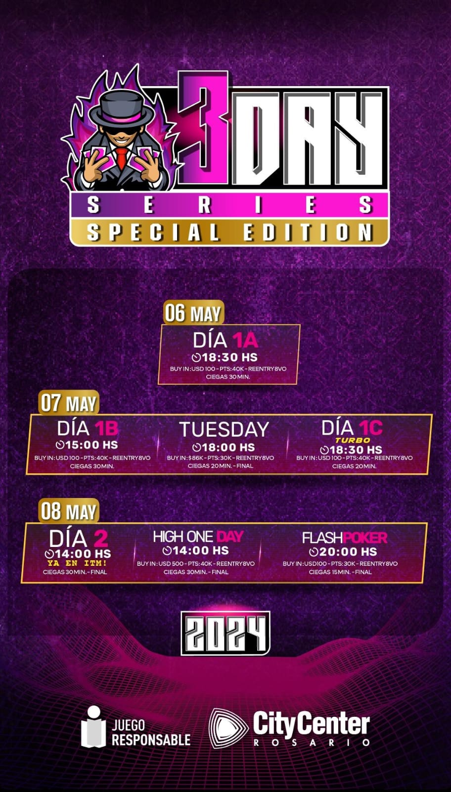 Además, complementariamente, se llevará a cabo el Tuesday este martes, un High One Day y un Flash Poker 100 durante el miércoles.