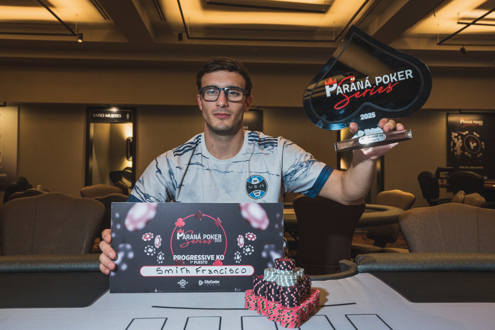 El Evento Progressivo KO, convocó un total de 32 jugadores que se debatieron durante largas horas en las mesas y en donde Francisco Smith, de Corrientes, se quedó con una celebrada victoria luego de vencer en el heads up a David Schaigorododski para levantar el trofeo y obtener una recompensa de 597,000 pesos.